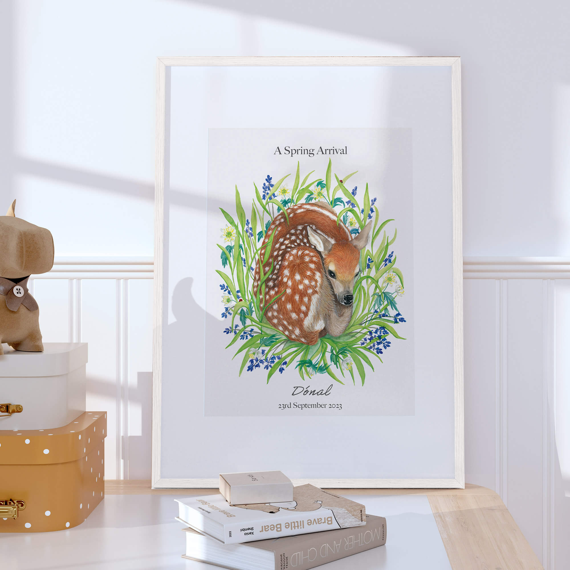 Personalised baby gifts to celebrate the birth of a newborn, a cherished special occasion, or as unique children's room art. Inspired by Irish nature and childhood tales, Fiadh and Finn create fine art giclée framed prints and baby name frames, from original watercolour artwork created and framed in County Kildare, Ireland.